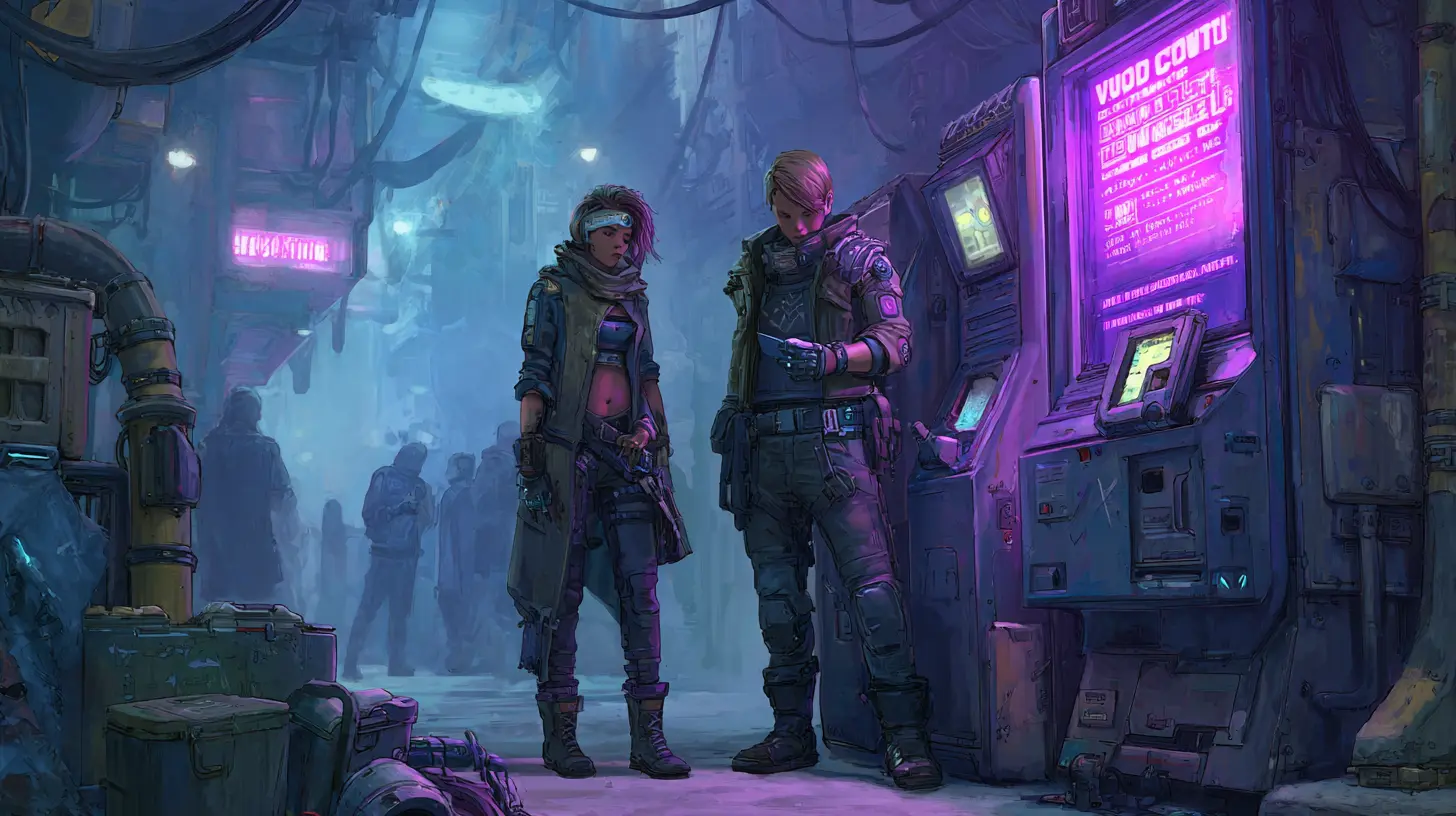 Mara Vex leaned into the glow of a busted vending machine like it was a campfire. The light carved her face into angles: a young woman with tired eyes and a grin that arrived late to every conversation, as if it had been roughed up on the way. She wore a coat cut from old courier armor, patched with duct-tape prayers and stitched pockets full of illegal tools—signal needles, micro-spoofs, a folding keyboard the size of a prayer book. She thought in patterns the way some people thought in songs: lattices of encryption, social networks like spiderwebs, the rhythm of patrol drones overhead. And she thought about Jax Rellan the way she tried not to think about hunger—constantly, fiercely, with a private shame at how much it mattered. Jax sat beside her on a crate of contraband oxygen canisters, long-limbed and restless, a boy with the kind of face that made security cameras “malfunction” because the algorithm couldn’t decide if he was trouble or just beautiful. His left wrist was wrapped in a haptic brace, a black band threaded with silver filaments, the kind of illegal augment that let you feel code like it was texture. When he flexed his fingers, Mara watched the tendons move and felt an ache in her chest that had nothing to do with fear.